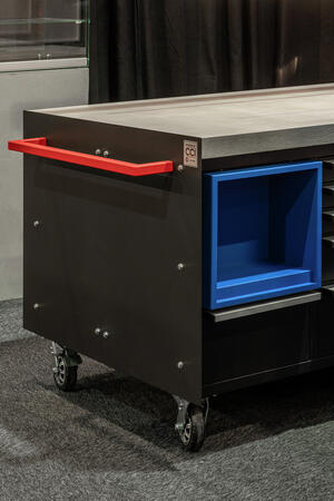 For Install Day, we designed a demo desk that can also be used later in their showroom. This design conveys the purpose and flexibility of the demo desk in both contexts.